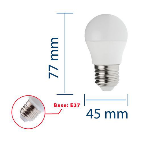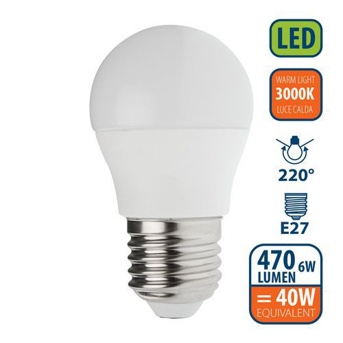 Ampoule Led Smd mini-Sphérique P45 6W culot E27, Flux lumineux: 470 lm, Type de culot: E27