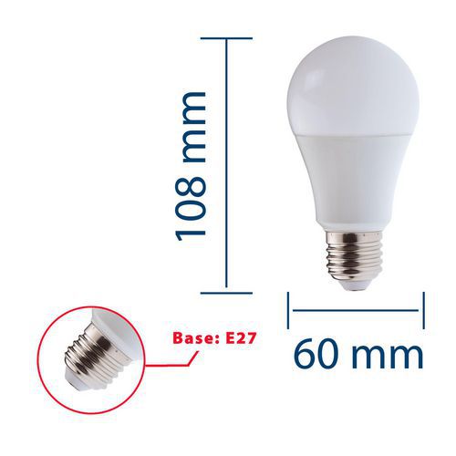 Ampoule Led Smd standard A60 avec une durée de vie de 20000 heures (bien supérieure aux standards du marché).