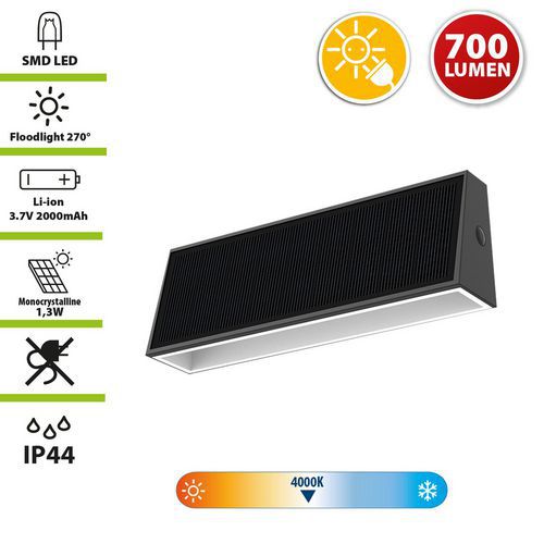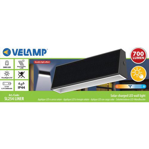 | Intitulé du produit | Applique murale LED solaire avec double faisceau lumineux Liner-Velamp, Flux lumineux: 700 lm |