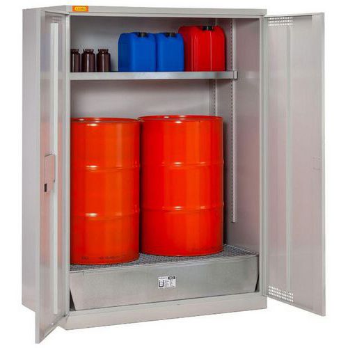 | Intitulé du produit | Armoire à fût 14/20 avec bac de rétention, Capacité de rétention: 210 L, Coloris: Gris, Type: Armoire |