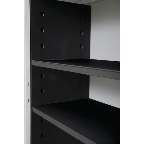 - Aménagez l’intérieur de votre armoire avec des tablettes en métal réglables.