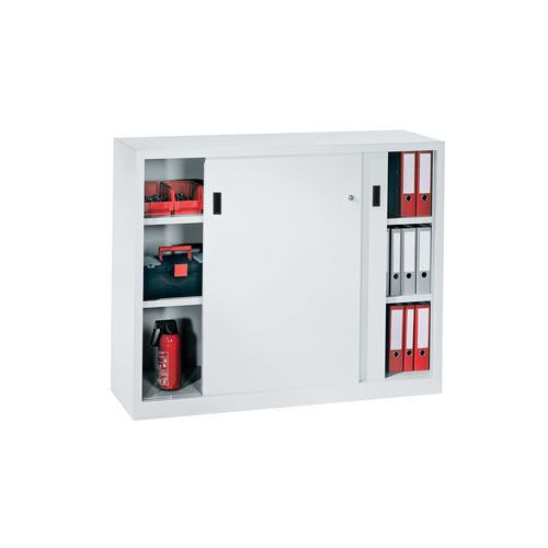 - Armoire d'atelier basse robuste soudée à portes coulissantes en acier.