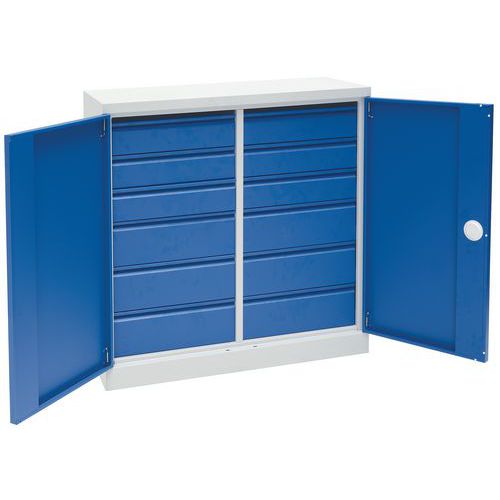 Solide armoire d’atelier basse pour matériel et outils lourds.