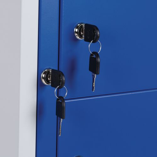 Armoire équipée d'1 serrure centrale pour l'ouverture du bloc et d'1 serrure individuelle par casier. Toutes les serrures sont livrées avec 1 jeu de 2 clés.
