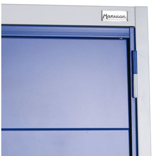 Armoire avec porte-étiquette embouti sur chaque casier.