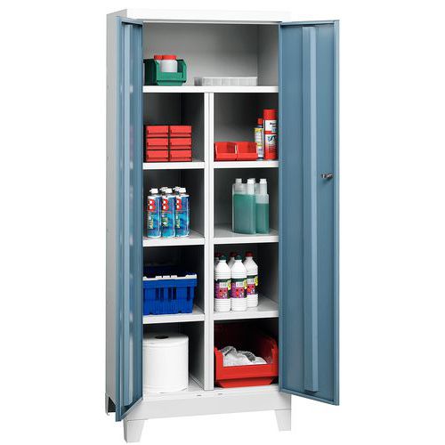 - Armoire haute robuste avec cloison sur pieds antidérapants.