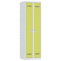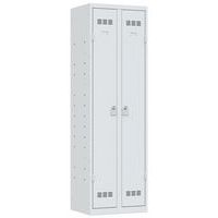Vestiaire multiservices 2 portes. Composé d'une partie penderie et d'une partie rangement. Gamme moderne alliant qualité, sécurité et design. Soudés en usine, pour une robustesse optimale. Niveau très élevé de résistance à l'effraction. Conseils de sécurité : - installer le meuble sur une surface plane - le fixer sur un mur ou une cloison avec une fixation adaptée - veiller à ne pas dépasser la charge maximum conseillée, ainsi qu’à sa bonne répartition
