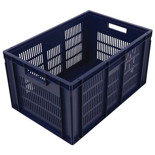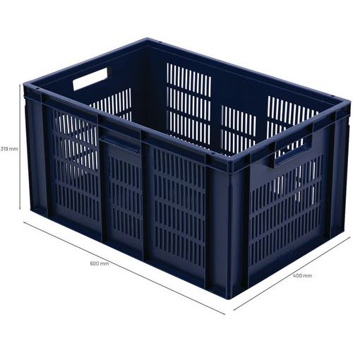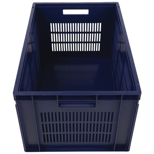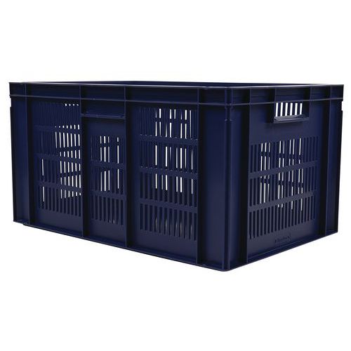 Bac norme Europe bleu à grande stabilité au gerbage. Large ventilation garantie avec les parois ajourées. Manipulation aisée grâce à ses larges poignées ouvertes. Résistance aux huiles, graisses et nombreux produits chimiques.