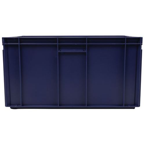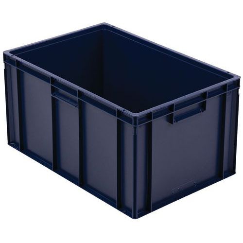 Bac norme Europe de grande stabilité au gerbage. Poignées fermées : manutention aisée, capacité préservée. Résistance aux huiles, graisses et nombreux produits chimiques.