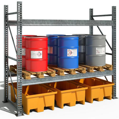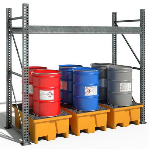| Intitulé du produit | Bac de rétention 2 fûts 240 L Caillebotis PEHD, Caillebotis: oui, Capacité de rétention: 240 L |