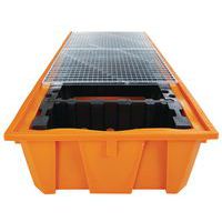 Bac de rétention pour 3 IBC, idéal pour le stockage et soutirage de produits dangereux.