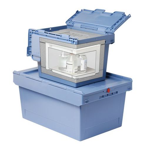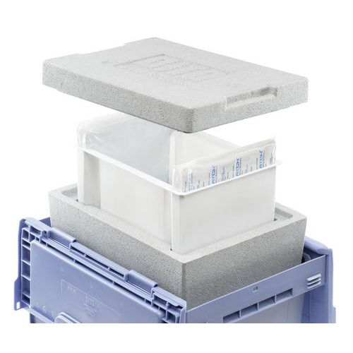 Composition : - 1 box Neopor® avec couvercle - 1 insert en PS lavable - 3 accumulateurs de froid par insert Icecatch® Solid Isolated