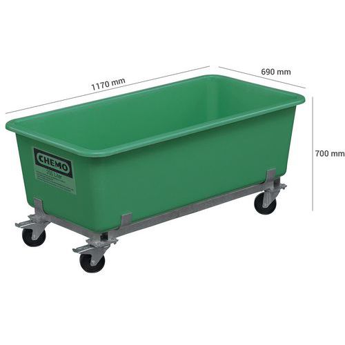 Bac emboîtable sur roulettes, Capacité: 300 L, Hauteur hors tout: 700 mm, Largeur hors tout: 690 mm