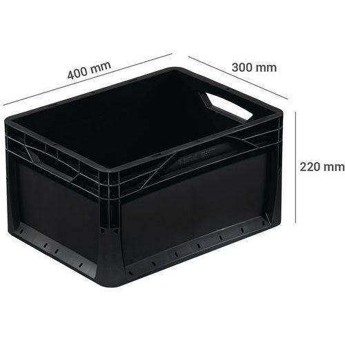 Bac Europe plein avec poignées ouvertes, Capacité: 20 L, Gerbable: oui, Hauteur hors tout: 220 mm