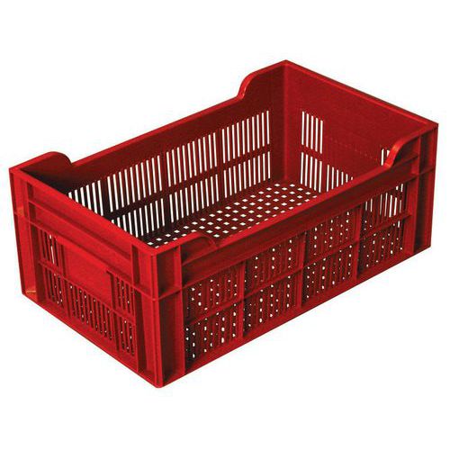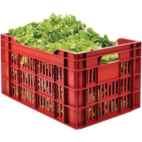 Caisse ajourée empilables Idéale pour le stockage des fruits et des légumes. Aération du contenu. Très résistante en utilisation intensive. Poignées intégrées ergonomiques pour une préhension facile et pratique. Couvercles caisses pleines adaptés également aux caisses ajourées. Les caisses ajourées 600x400 sont compatibles avec les socles 4 et 6 roues GILAC. Couvercles caisses pleines adaptés également aux caisses ajourées. Les caisses ajourées 600x400 sont compatibles avec les socles 4 et 6 roues GILAC. Usage alimentaire Charge maxi (kg) : 60 Froid/Surgelé