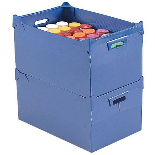 Grande robustesse grâce à ses petits côtés renforcés par profilés plastique. Manutention facilitée par poignées et guide-fourche. Plis préformés pour un montage rapide. Garantie client : 3 ans Charge maxi (kg) : 38
