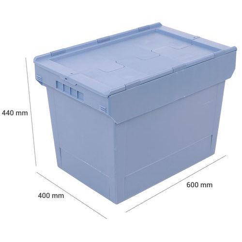 Gerbable et emboîtable pour un gain de place maximum. Dimensions normalisées Norme Europe idéales pour le transport. Réduction des emballages grâce à couvercle rabattable intégré. Parois intérieures lisses pour une utilisation optimale du volume. Disponible en 4 formats.
