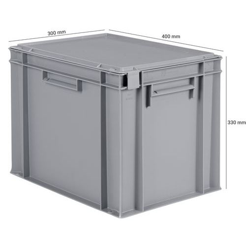 Bac Norme europe à couvercle, Capacité: 30 L, Gerbable: oui, Hauteur hors tout: 330 mm