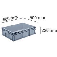 Bac norme Europe plein, Capacité: 90 L, Gerbable: oui, Hauteur hors tout: 220 mm, Largeur hors tout: 600 mm