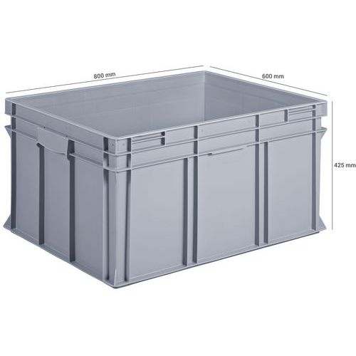 Bac norme Europe plein, Capacité: 175 L, Gerbable: oui, Hauteur hors tout: 425 mm, Largeur hors tout: 600 mm