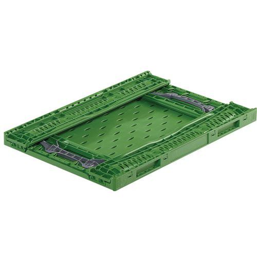 Bac pliant est pratique car il permet de réduire le volume. Construction spéciale du fond et des angles pour supporter de fortes charges dans la pile. Facile à déplier et à replier grâce à sa fermeture ergonomique Lift-Lock. Surfaces particulièrement lisses pour protéger la marchandise. Perforation optimale pour la ventilation de vos différents produits. Stable et très facile à empiler.