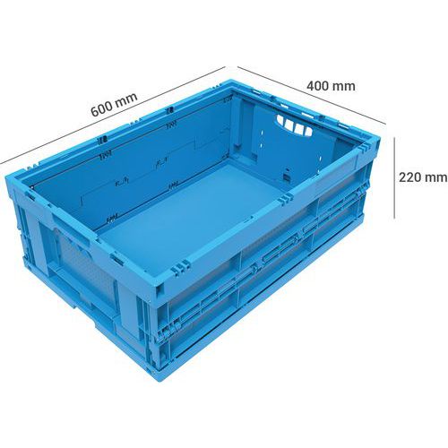 Équipé de charnières renforcées et d'un rebord sécurisé pour le gerbage.
