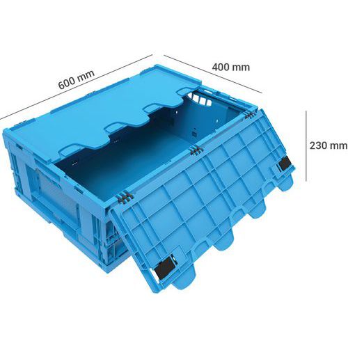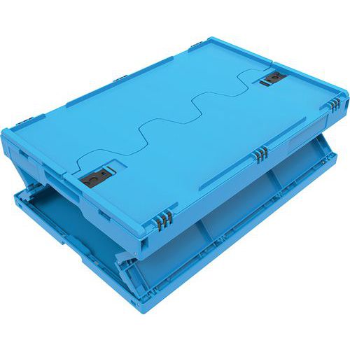 Équipé de charnières renforcées et d'un rebord sécurisé pour le gerbage.