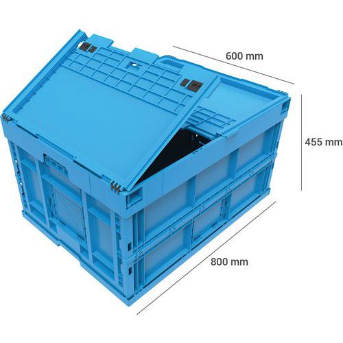| Intitulé du produit | Bac pliant, Capacité: 171 L, Hauteur hors tout: 455 mm, Largeur hors tout: 600 mm, Longueur hors tout: 800 mm |