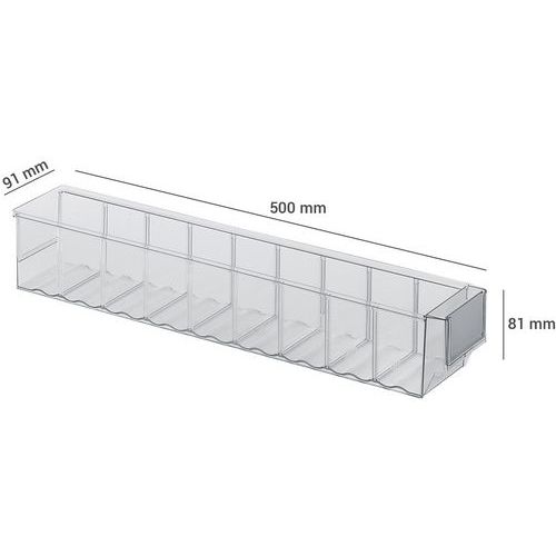 Bac-tiroir de rangement, Capacité: 2.7 L, Hauteur hors tout: 81 mm, Largeur hors tout: 91 mm