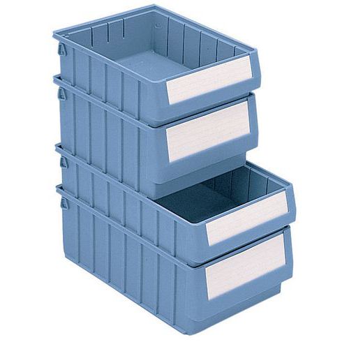 Multiples possibilités de cloisonnement intérieur. Bac-tiroir indéformable résistant aux huiles et graisses. Gerbable avec bacs série RK de même largeur. Charge maxi (kg) : 7