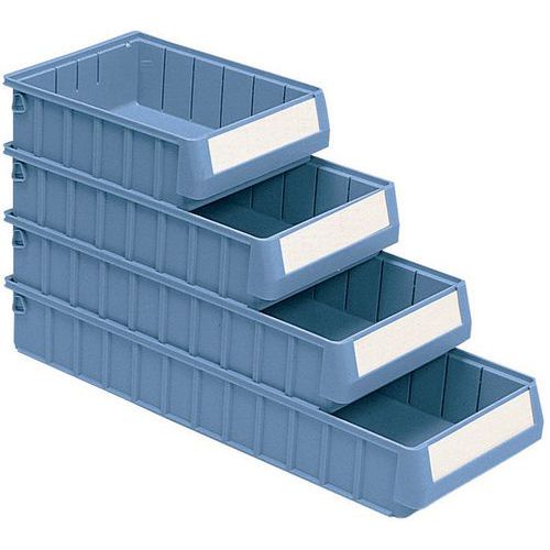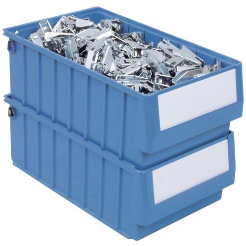 Multiples possibilités de cloisonnement intérieur. Bac-tiroir indéformable résistant aux huiles et graisses. Gerbable avec bacs série RK de même largeur. Charge maxi (kg) : 13