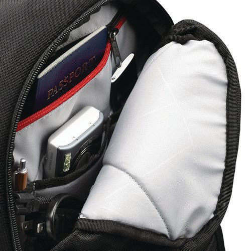 - Poche avant avec rangement : téléphone portable, iPod, câble d'alimentation et autres accessoires.