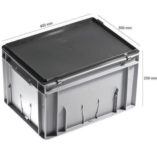 Bacs à couvercle RAKO gris, Capacité: 20 L, Gerbable: oui, Hauteur hors tout: 250 mm Bacs à couvercle RAKO gris, Capacité: 20 L, Gerbable: oui, Hauteur hors tout: 250 mm