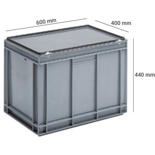 Bacs à couvercle RAKO gris, Capacité: 90 L, Gerbable: oui, Hauteur hors tout: 440 mm