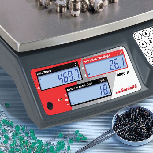 - Parfaite lisibilité grâce aux 3 afficheurs : poids brut ou net, poids unitaire et nombre de pièces.