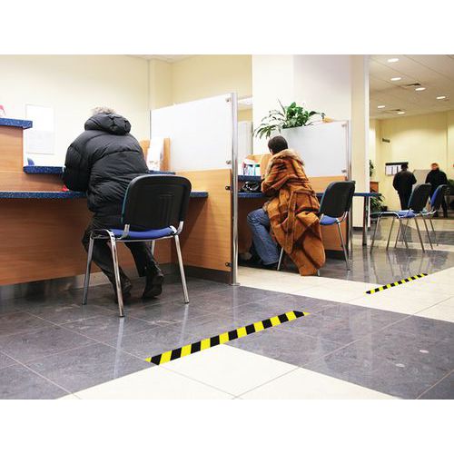 - Bande adhésive de marquage au sol permettant une gestion plus efficace des files d'attente ou zones d'accueil.