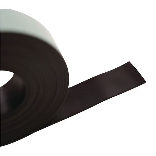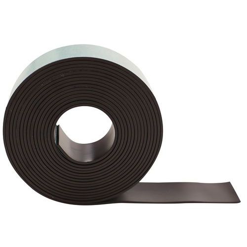 Ruban aimanté à fixation adhésive: la face adhésive se fixe au dos de vos panneaux, documents ou objet, la face aimantée se positionne sur votre surface métallique.