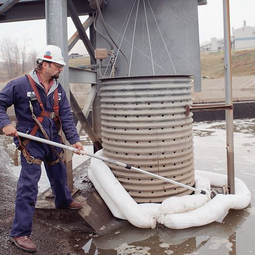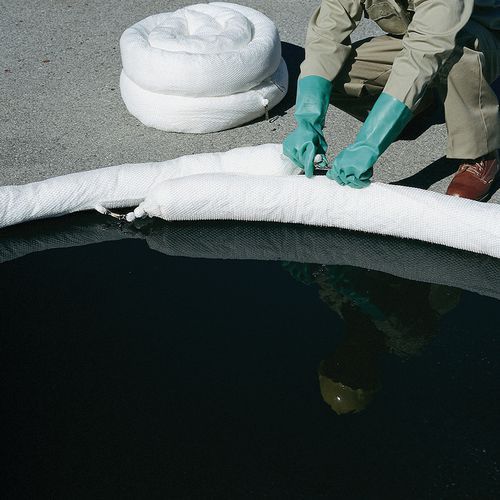 Flottabilité du barrage absorbant à pleine saturation. Assemblage à l'aide des fixations en acier pour couvrir une plus grande surface. Enveloppe renforcée et résistante aux UV. Signalement immédiate des déversements grâce au coloris blanc.