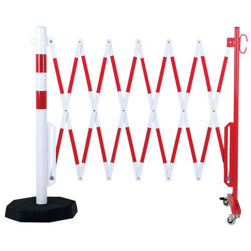 Barrière extensible sur roulettes avec poteau socle lourd - Crash stop Barrière extensible sur roulettes avec poteau socle lourd - Crash stop
