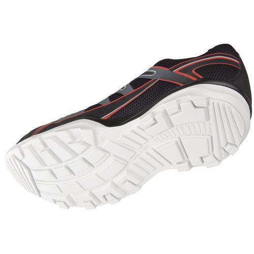 Baskets de sécurité basses Run-R 100 Low S1P SRC. Semelle PU2D, adhérente, résistante aux huiles et hydrocarbures, profil autonettoyant, absorption des chocs. Tige mesh et structure de maintien TPU pour une meilleure résistance à l'abrasion. Easy lock system système de laçage rapide, lacets standard supplémentaires fournis dans la boîte. Doublure polyester mesh 3D, respirante, absorbante et séchage rapide. Embout non métallique, non conducteur du chaud et du froid. Semelle anti-perforation non métallique, légère, souple, non conductrice du chaud et du froid. Semelle de propreté amovible, anatomique avec absorbeurs de chocs à l’avant et à l’arrière.