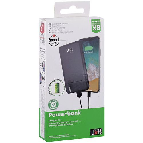| Intitulé du produit | Batterie de secours nomade 2 USB, Capacité (électrique): 20000 mAh, Coloris: Noir, Largeur: 7.5 cm |