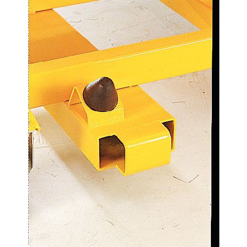 Sur roulettes avec bandage en polyuréthane d’un diamètre de 16 mm (2 fixes et 2 pivotantes) avec arceau de poussée et système roll-on/roll-off à l’avant.