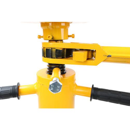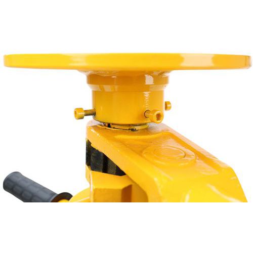 Réglage de la hauteur par vis ajustable grâce à un mécanisme à cliquet et un bras de levier.