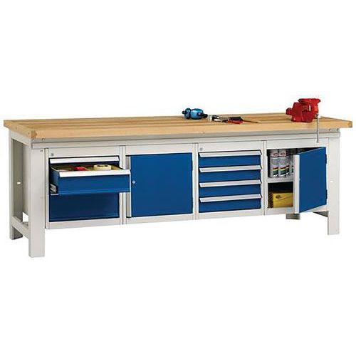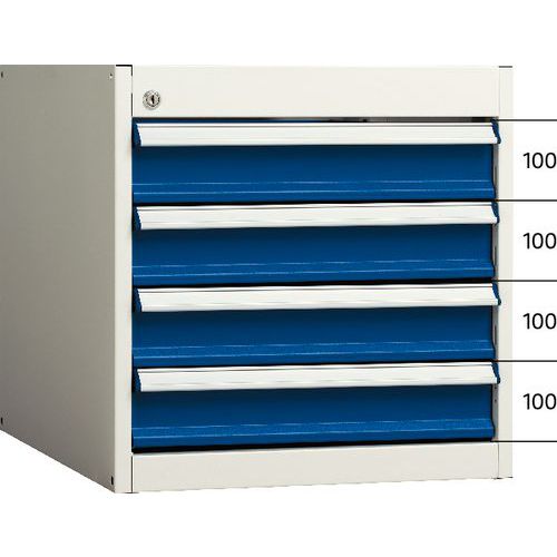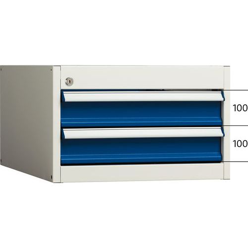 Caissons tiroirs ou porte aisés à monter sur châssis d'établi. Tiroirs avec glissières télescopiques extractibles à 100%. Sécurité maximale avec système de verrouillage central. Bloc-tiroirs et bloc-porte à poignées alu et porte-étiquette. Garantie client : 3 ans