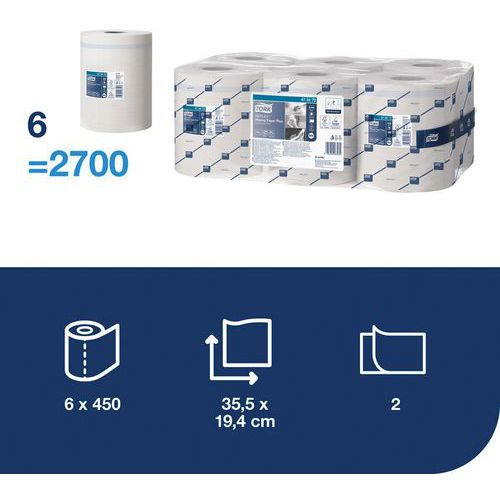 Bobine d'essuyage à devidage central Tork Reflex Plus, Coloris: Blanc, Type de produit: Bobine de papier Bobine d'essuyage à devidage central Tork Reflex Plus, Coloris: Blanc, Type de produit: Bobine de papier