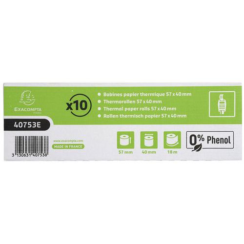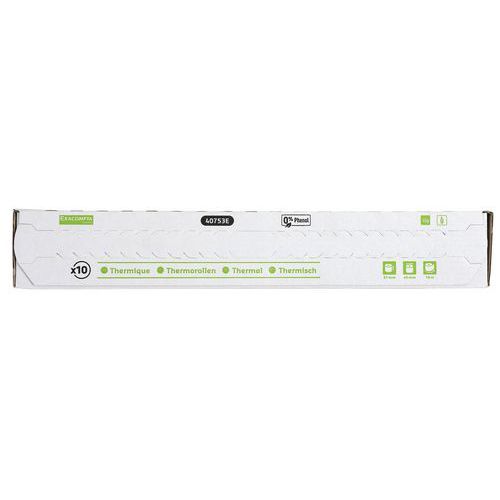 | Intitulé du produit | Bobines pour tickets carte bancaire 1 pli thermique 55g/m2, Type: Bobines pour tickets de carte bancaire |