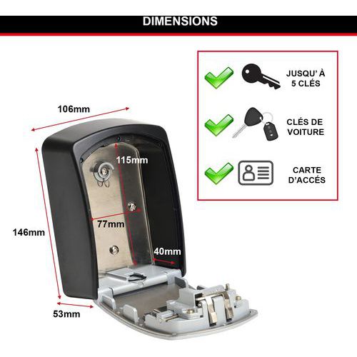 - Boîte à clés à combinaison format L pour une large capacité de rangement.