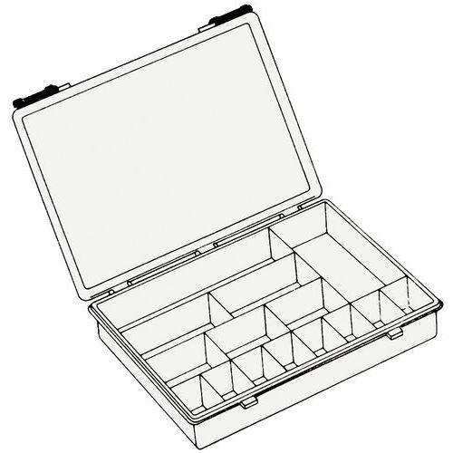 Boîte à compartiments antichoc, Charge maxi: 5 kg, Hauteur hors tout: 57 mm, Largeur hors tout: 340 mm Boîte à compartiments antichoc, Charge maxi: 5 kg, Hauteur hors tout: 57 mm, Largeur hors tout: 340 mm