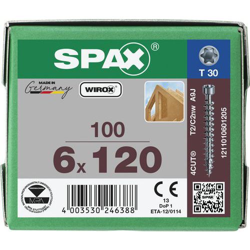 Boite de 100 vis à bois à tête cylindrique TX Ø 6mm - Spax