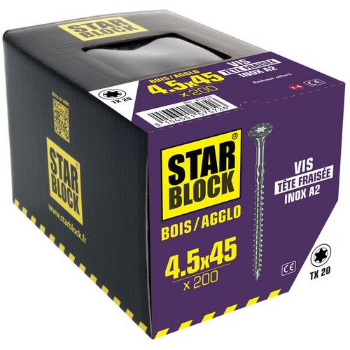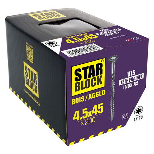 | Intitulé du produit | Boite de 200 vis Torx 4,5x45mm, Matériau: Inox, Filetage Ø: 4.5 mm, Empreinte vis: Torx |